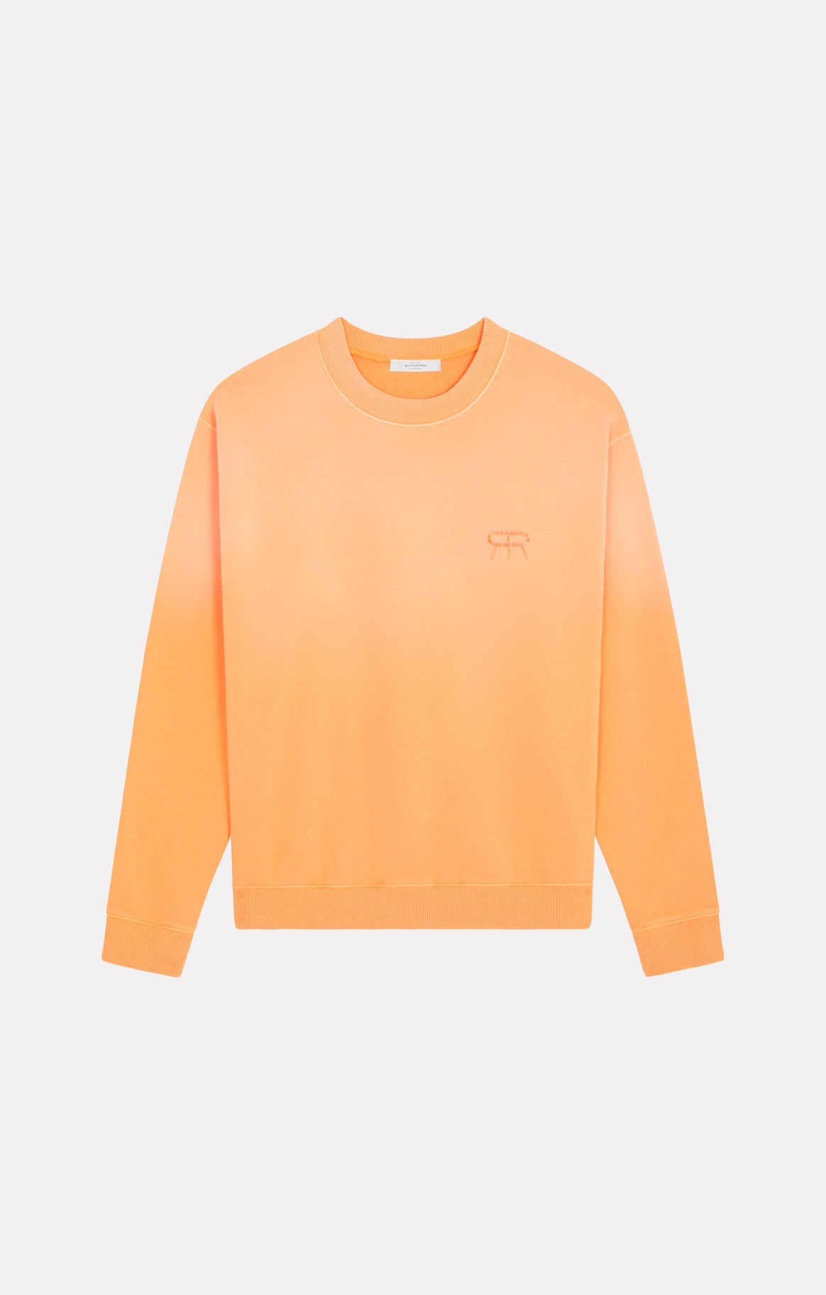 Sweatshirt genderless présente une coupe droite et ample, une broderie 3D ЯR poitrine en ton/ton ainsi qu'un molleton souple.