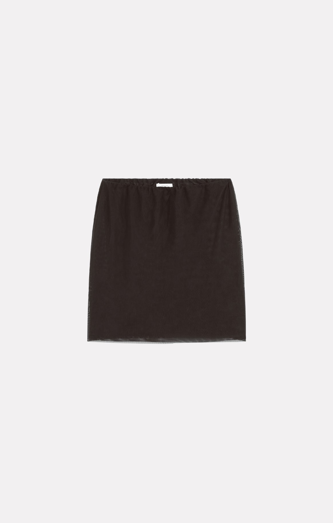 Cette jupe courte en double tulle présente une taille élastiquée, une coupe près du corps pour un effet seconde peau. Elle se porte sous les pièces transparentes.